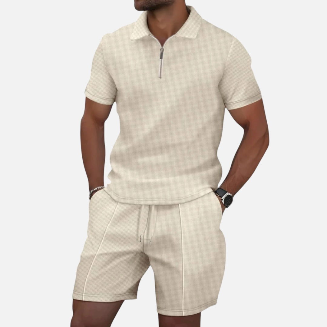 Giannis - Σετ polo με φερμουάρ στο λαιμό και σορτς με κορδόνι από απαλό ύφασμα