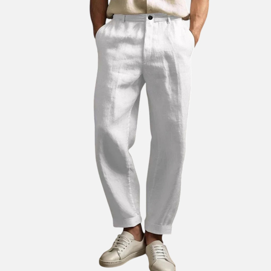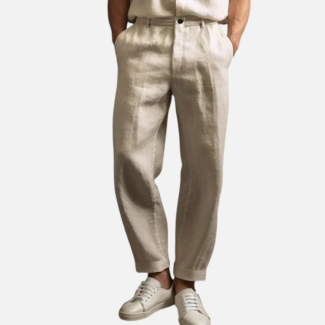 Η casual ανδρική λινή μας παντελόνα για το καλοκαίρι είναι η ιδανική επιλογή για χαλαρές ημέρες και ζεστά βράδια. Αυτό το παντελόνι από υψηλής ποιότητας λινό ύφασμα προσφέρει όχι μόνο άνεση, αλλά και ένα χαλαρό look, ιδανικό για διάφορες δραστηριότητες στον ελεύθερο χρόνο.