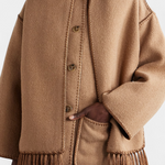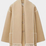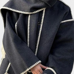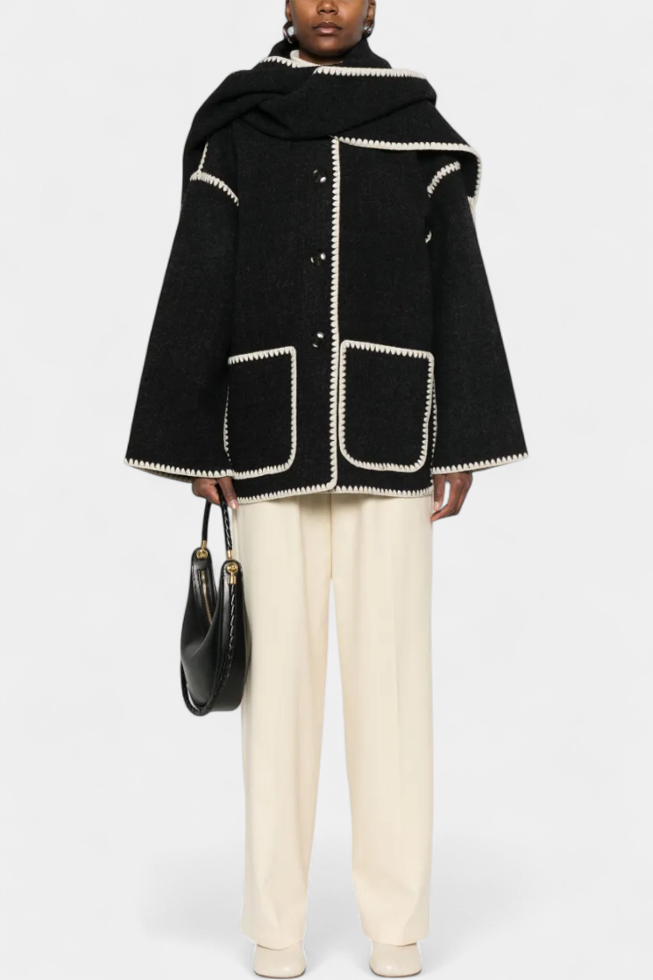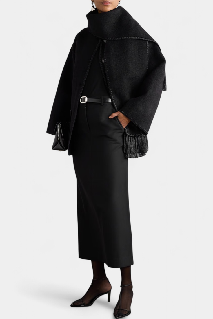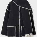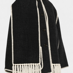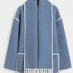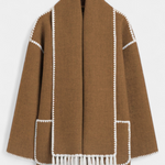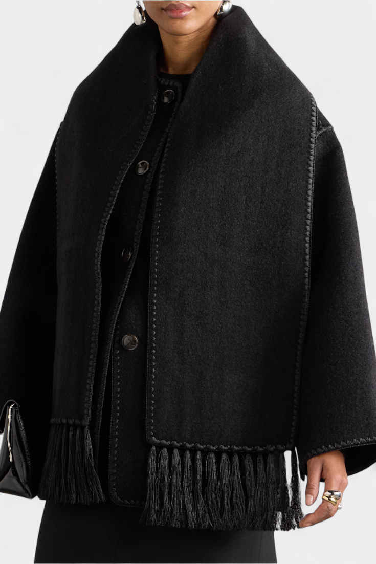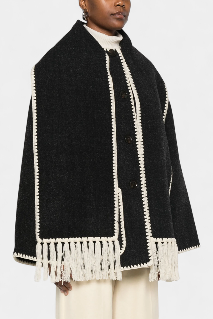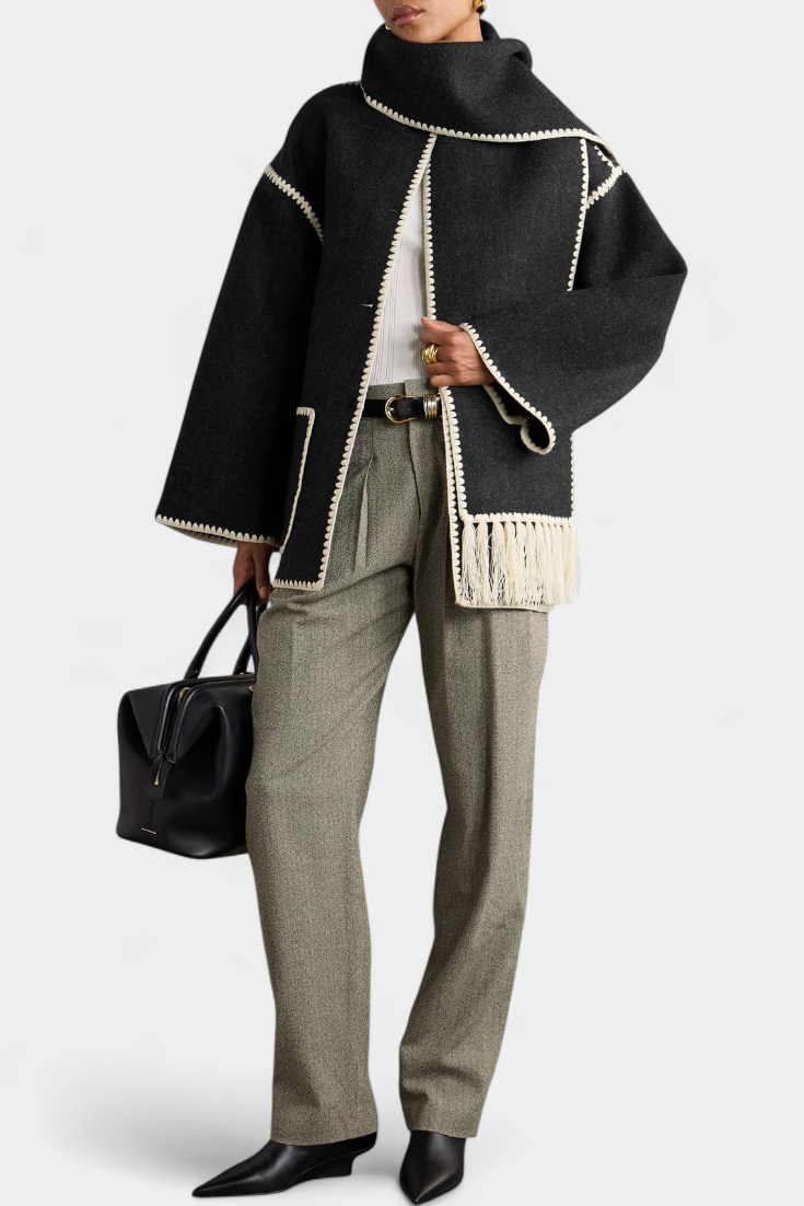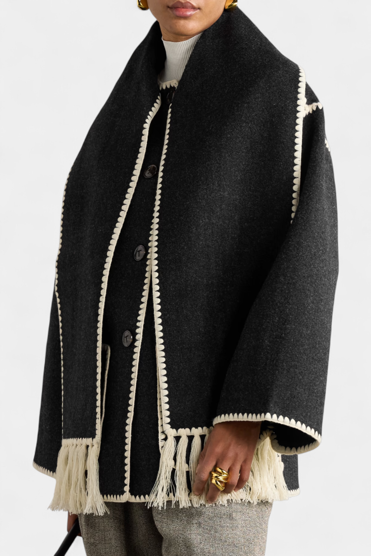 - Το ενσωματωμένο κασκόλ με κρόσσια προσθέτει υφή και λειτουργικότητα