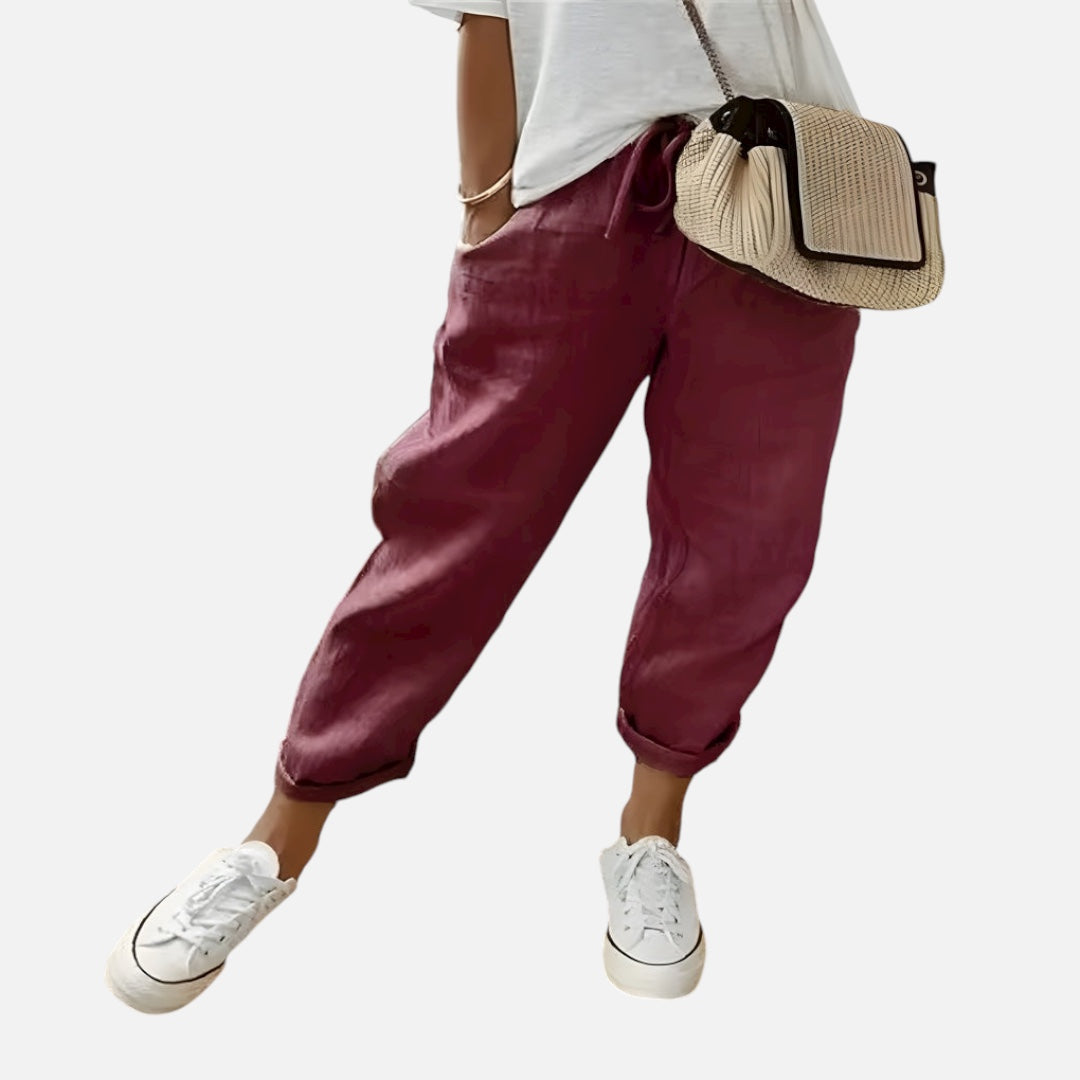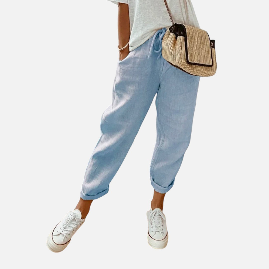 Selene - παντελόνι από βαμβακερό λινό – Santorya