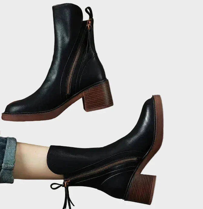 Allegra - Γυναικείες Μπότες Ψηλές με Φερμουάρ και Σταθερό Τακούνι – Santorya