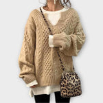 Λίλι - Υπερμεγέθης πλεκτός πουλόβερ με σχέδιο πλεξούδας