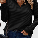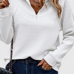 Εν μέρει εκλεπτυσμένο, απαραίτητο. Εν μέρει καθημερινή άνεση. Το πουλόβερ Helene προσφέρει μια καθαρή σιλουέτα με την κατάλληλη ποσότητα λεπτομέρειας, χάρη στην κομψή λαιμόκοψη V με φερμουάρ και την χαλαρή εφαρμογή. Ελαφρύ αλλά αρκετά δομημένο για να αναβαθμίσει την εμφάνισή σας, είναι το είδος του κομματιού που προσαρμόζεται αβίαστα σε κάθε μέρα, σε κάθε σχέδιο, σε κάθε διάθεση. Από το κομψό μέχρι το μινιμαλιστικό, το Helene βρίσκει πάντα τη θέση του.