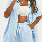 Αυτό το μονόχρωμο γυναικείο σετ συνδυάζει απλότητα και μοντέρνο στυλ, ιδανικό για καλοκαιρινές εμφανίσεις με ανεπιτήδευτη κομψότητα. Το πουκάμισο προσθέτει χαλαρή φινέτσα, ενώ το σορτς προσφέρει άνεση και ελευθερία κινήσεων.