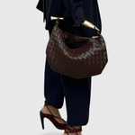 Η υφασμένη τσάντα Gerda είναι ένας εορτασμός της δεξιοτεχνίας, της δομής και της κομψότητας. Κατασκευασμένη από vegan δέρμα υψηλής ποιότητας, ο περίπλοκος υφαντός σχεδιασμός της αντανακλά την προσοχή της μάρκας στη λεπτομέρεια και τη διαχρονική αισθητική. Η χρυσή λαβή από ανοξείδωτο ατσάλι, με το γλυπτό σχέδιο, προσθέτει μια μοντέρνα πινελιά, καθιστώντας την Gerda ένα αξεσουάρ που δίνει μια κλασική και καλλιτεχνική αίσθηση.