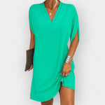 Ένα απλό αλλά εντυπωσιακό φόρεμα που συνδυάζει κομψότητα και άνεση. Η ίσια του γραμμή κολακεύει κάθε σιλουέτα και η V-λαιμόκοψη προσθέτει μια εκλεπτυσμένη νότα. Ιδανικό για τις ζεστές μέρες, φοριέται εύκολα από το πρωί μέχρι το βράδυ.