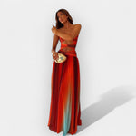 Ένα φόρεμα που δεν περνά απαρατήρητο. Η ανάλαφρη γραμμή του και οι κομψές αποχρώσεις σε ντεγκραντέ δημιουργούν μια αίσθηση κίνησης και κομψότητας, ιδανική για καλοκαιρινές εξορμήσεις και βραδινές εμφανίσεις με χαρακτήρα.