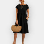 Το απόλυτο καλοκαιρινό φόρεμα που συνδυάζει διαχρονική φινέτσα με ανάλαφρη αίσθηση. Με καθαρές γραμμές και δροσερό ύφασμα, φοριέται εύκολα από το πρωί μέχρι το βράδυ.
