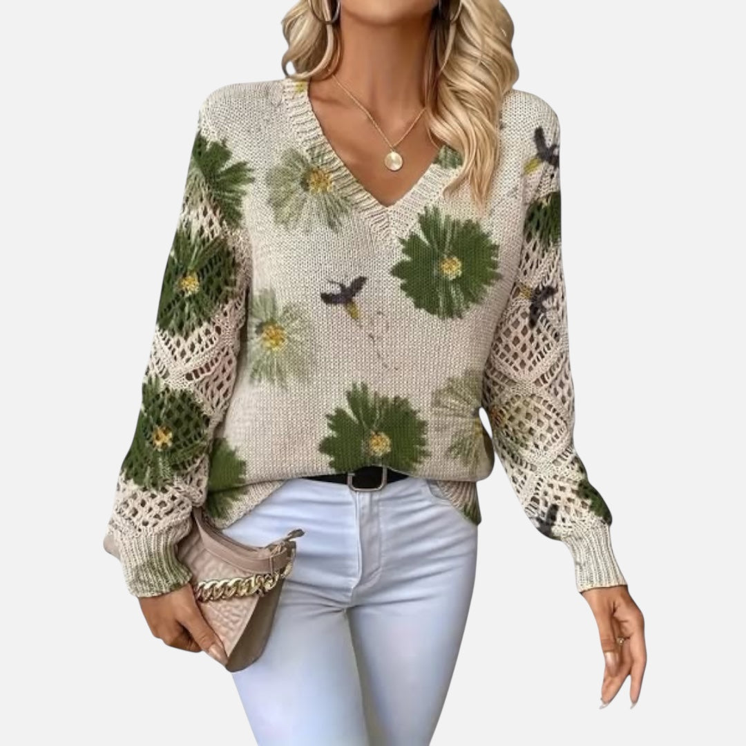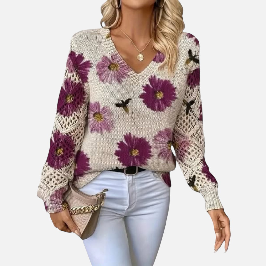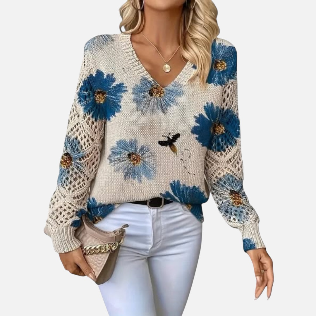 Catarina - Πλεκτή μπλούζα με φλοράλ σχέδιο