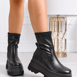 EVELIN - Μαύρα ελαστικά μποτάκια μάχης με chunky πλατφόρμα