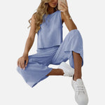 Αυτό το διμερές σετ με top και άνετο παντελόνι για γυναίκες είναι η ιδανική επιλογή για το καλοκαίρι. Συνδυάζει minimal, μοντέρνο design με χαλαρή εφαρμογή που προσφέρει ελευθερία κίνησης. Για βόλτες, διακοπές ή casual συναντήσεις – αυτό το σετ συνδυάζεται εύκολα και προσφέρει κομψή εμφάνιση σε ζεστό καιρό.